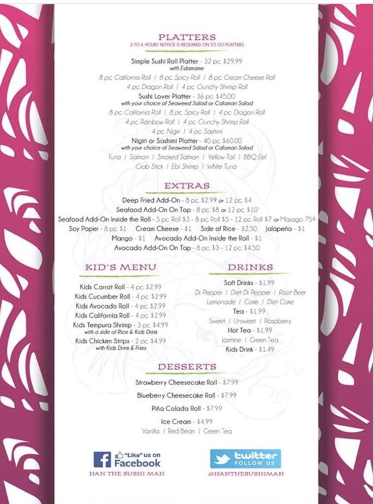 Han the Sushi Man prides itself on fresh, made-to-order dishes that can be customized to suit your preferences. Customers rave about the attention to detail and the off-menu options available. The new, larger location offers ample seating and a trendy yet comfortable atmosphere.
