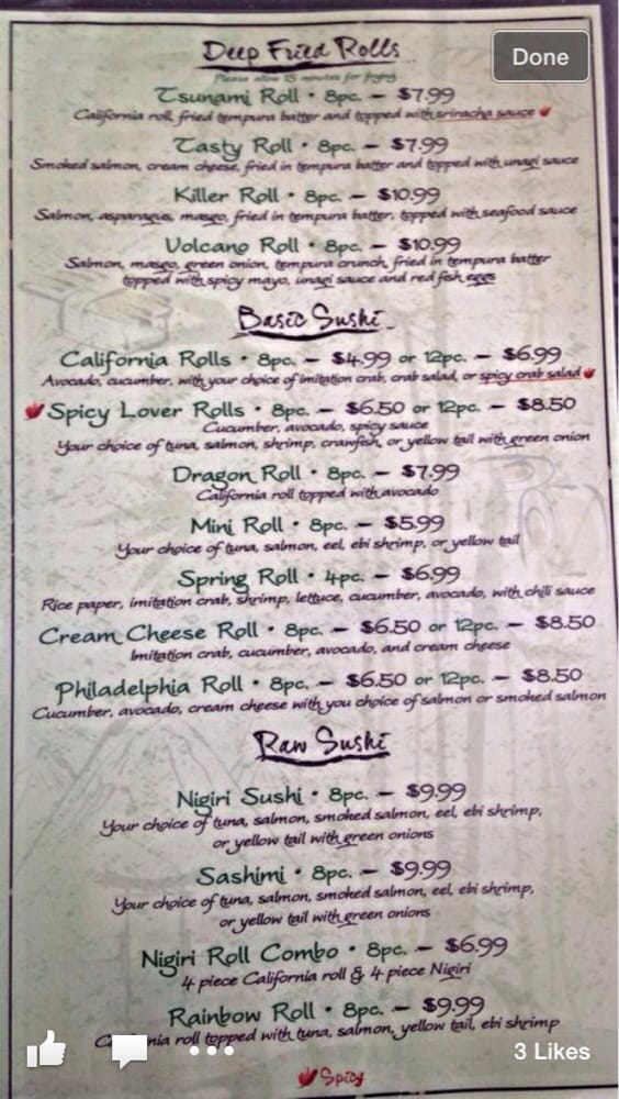 8 pieces. Tempura shrimp, spicy crab salad, eel & jalapeno drizzled with eel sauce, spicy sauce & sriracha sauce. Very spicy.