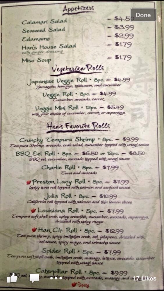 Welcome to Han the Sushi Man, a sushi bar in Joplin, MO that offers a variety of delicious Japanese cuisine. With a diverse menu that includes appetizers like Crab Rangoon and Avocado Bomb, soups like Miso Soup, and specials like the Bang Bang Shrimp Bowl, there is something for every palate.